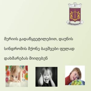 Նինոծմինդայի մունիցիպալիտետի քաղաքապետարանի որոշմամբ՝ Նինոծմինդայի մունիցիպալիտետի տարածքում գրանցված և բնակվող Դաունի համախտանիշ ունեցող երեխաները 300 լարիի չափով միանվագ դրամական օգնություն կստանան։