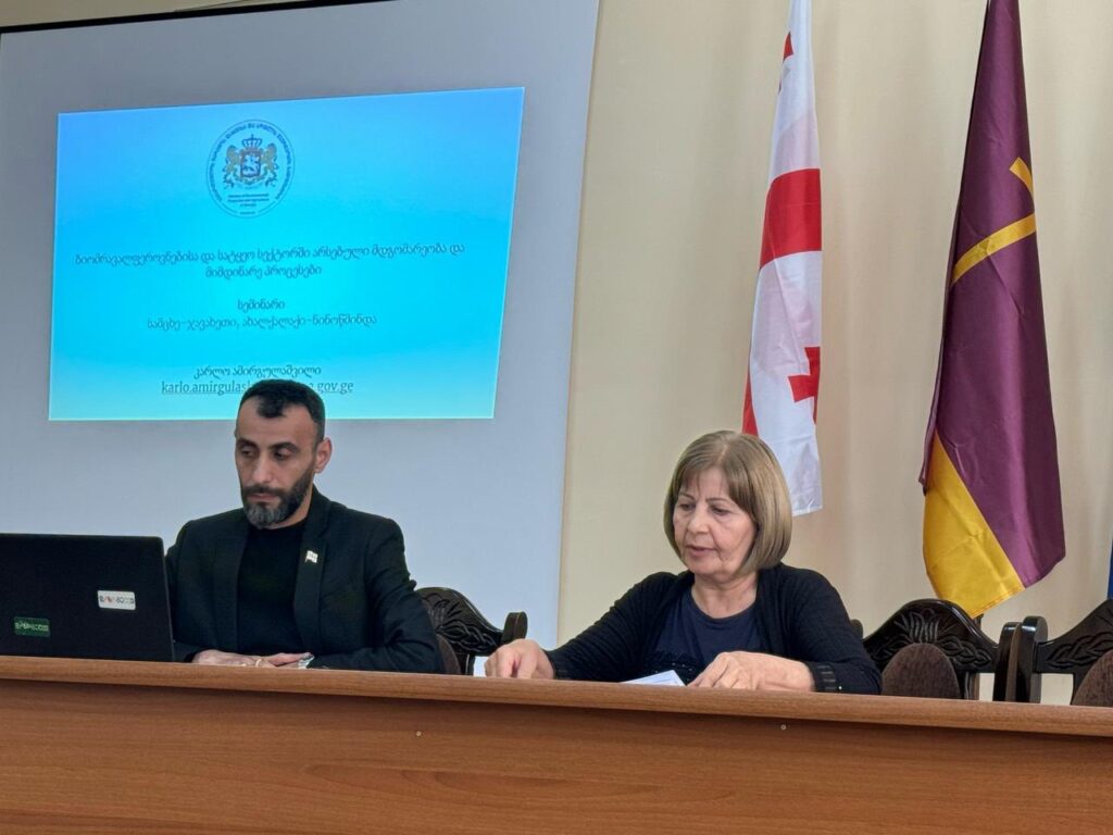 «Ագրոկենսաբազմազանության կառավարումը Սամցխե-Ջավախեթիի տարածաշրջանի խոցելի էկոհամակարգում և գյուղական բնակավայրերում» նախագծի շրջանակներում Նինոծմինդայի մունիցիպալիտետի քաղաքապետարանում տեղի ունեցավ հանդիպում։